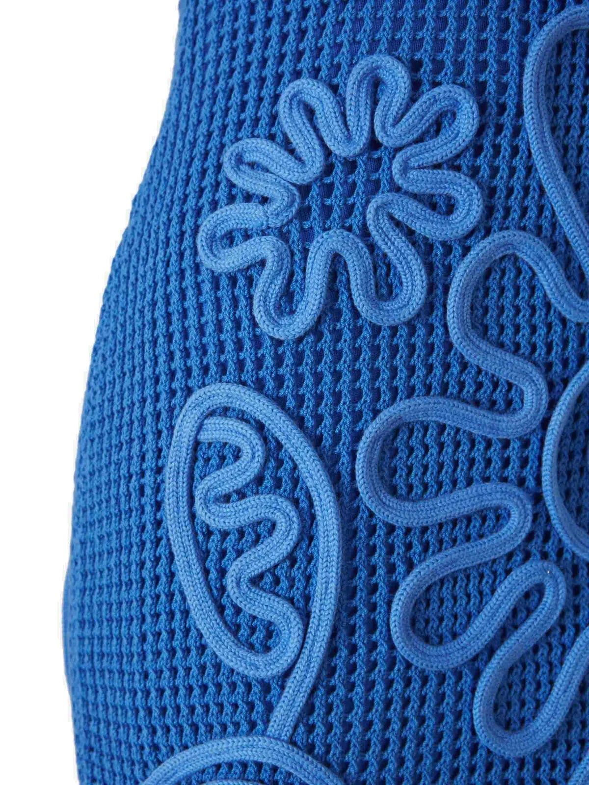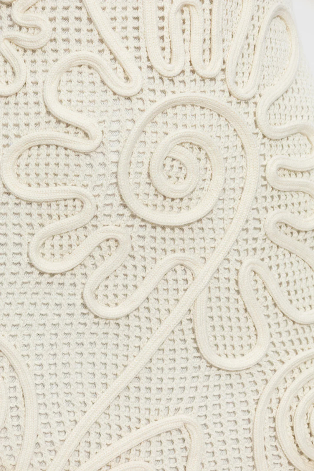 A sleeveless midi dress with a netting body and cord detail floral overlay.