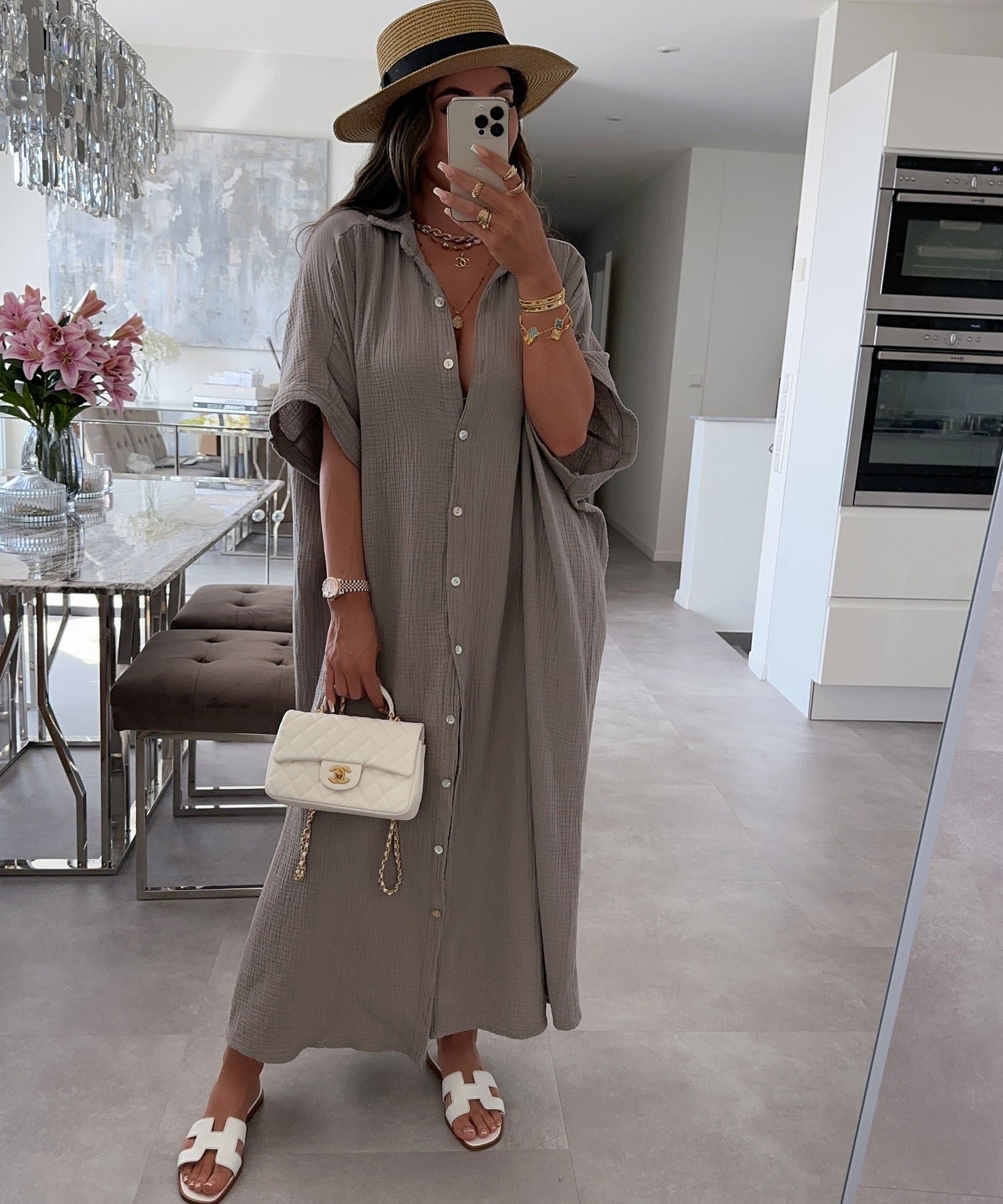 Relaxed midi dress with an oversized fit, designed for effortless everyday styling. True to size — model is 5'5" and wears size UK10 - M.