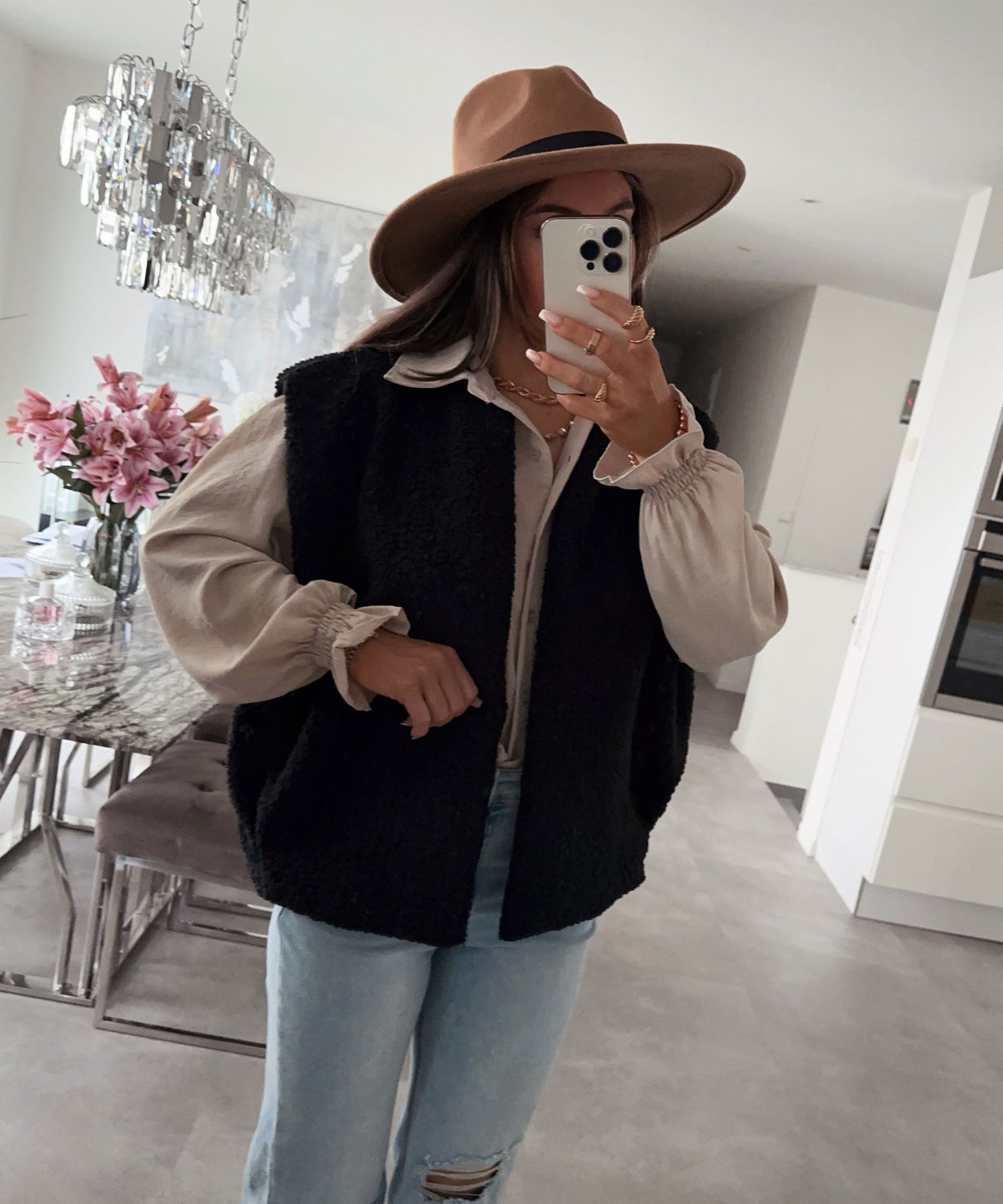 Super soft teddy fleece vest with side pockets. Model is 165 cm (5’5”) and is wearing size UK 10 - M.